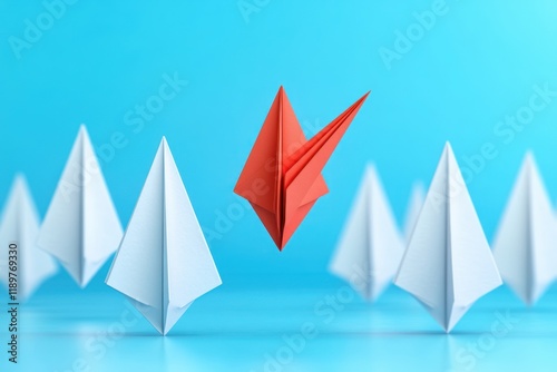 Red Paper Airplane Breaking Through Barriers on Blue Background, Concept of Overcoming Obstacles and Achieving Goals