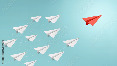 Red Paper Plane Leading Innovative Direction Forward