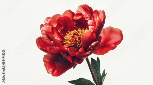 Red peony flower isolated on white background