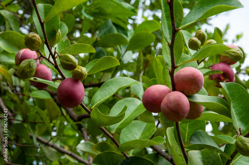 Red pink exotic fruits of Cocoplum (Chrysobalanus icaco)