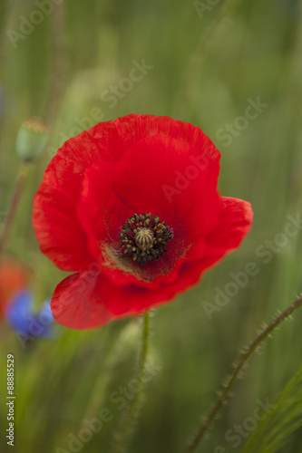 Red poppy (Papaver rhoeas) in a summer time meadow.