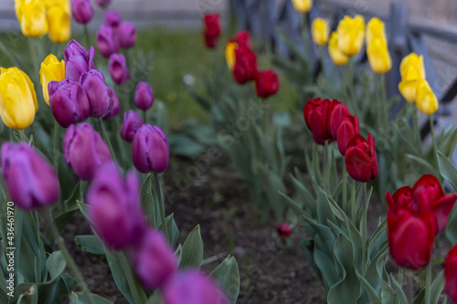 red, purple and yellow tulips
