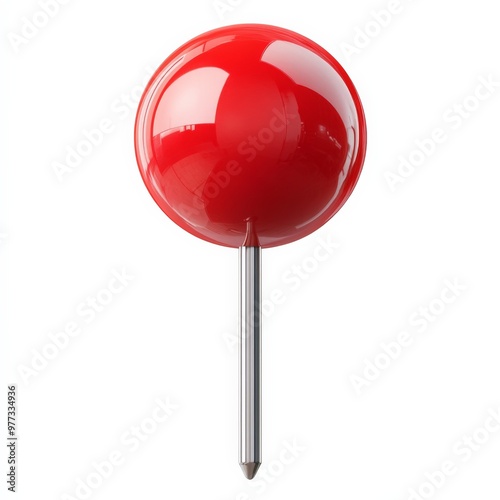 Red Push Pin: A single, glossy red push pin with a silver needle, isolated on a white background. The perfect visual for location marking, navigation, and pinpointing important locations.