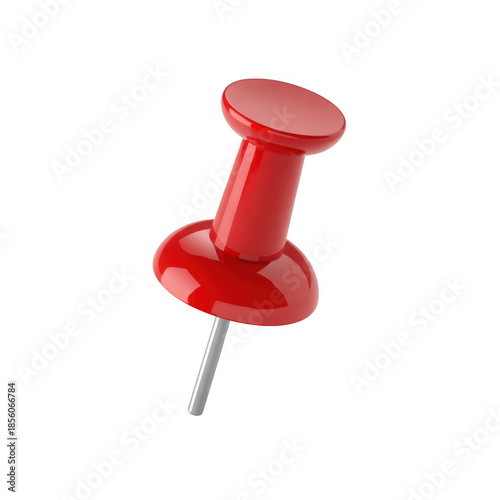 Red push pin with silver point thumbtack office supply isolated on a transparent background