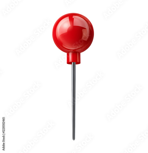 Red Pushpin with Round Head, Isolated on Transparent Background