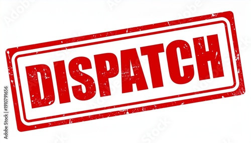Red Rectangular DISPATCH Stamp with Bold Capital Letters and Distressed Texture