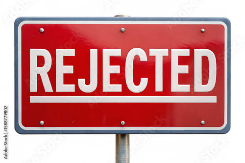 Red Rectangular Rejected Sign White Letters Gray Border Isolated on a transparent background image