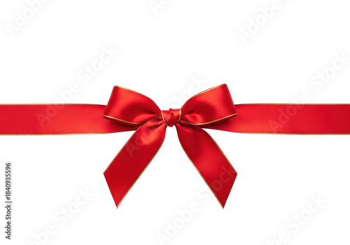 Red ribbon tied into a bow with gold trim isolated on transparent background