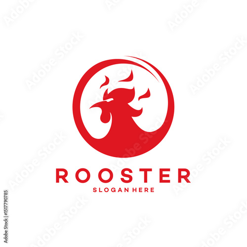 Red rooster design in a circular shape.