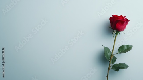 Red rose on light blue background