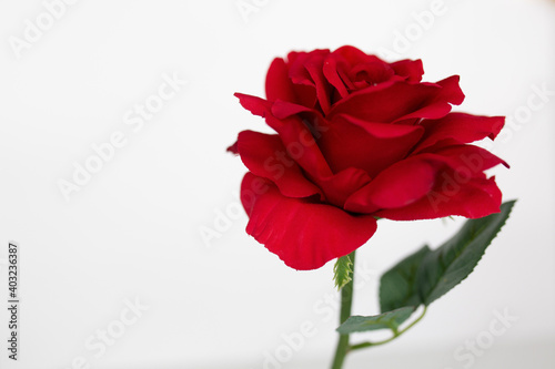 red roses roses flat lay against a white background