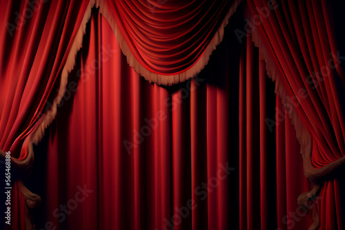 Red simple Curtain in Theatre stage Post-Production Cell. Illustration Generative AI