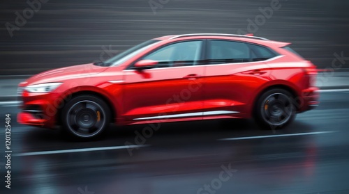 Red Sports Car in Motion with Blurred Wallpaper Background