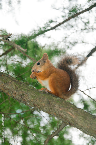 red squirrel on branch