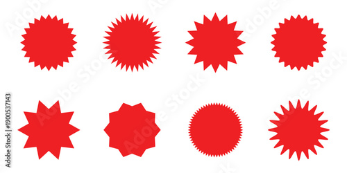 Red starburst sticker icon vector. Sunburst price tag, Promo sale explosion symbol. Vector illustration.