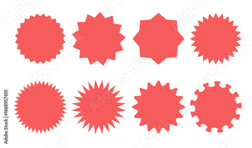 Red Stickers Badges Stamps Marketing Discount Promotion Shapes