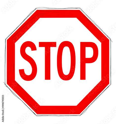 Red Stop Sign, Hand-Drawn Style, Transparent Background.