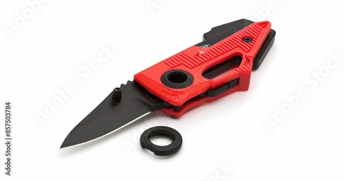 Red Swiss Army Knife with Multi-Tools, Open and Ready for Use