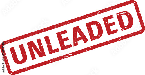 Red Unleaded Grunge Stamp Impression on White Background, Angled View, Distressed Texture, Retro Style