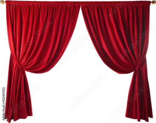Red velvet curtains drawn back to reveal