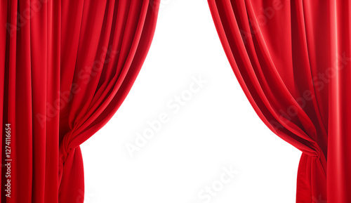 Red velvet curtains open on transparent background. Generative ai