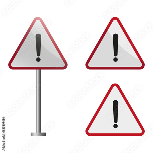Red warning sign. Exclamation mark vector. Caution symbol icon. Flat attention illustration.