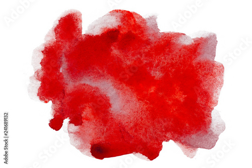 Red watercolor stain, on white background isolated. Hand-drawn blot on white background isolated.