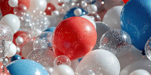 Red, White, and Blue Balloons with Water Droplets and Glitter