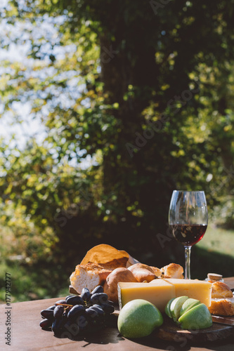 red wine with different snacks