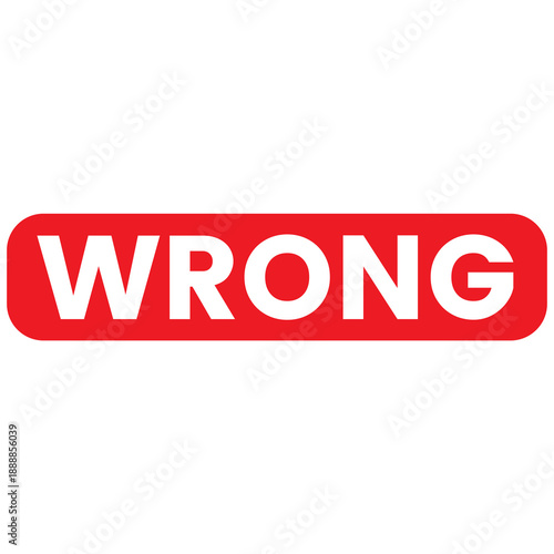 Red "WRONG" Button Icon – Flat Vector Text Sign for Error, Warning, or Rejection