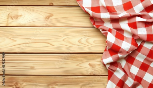 Red-and-white checkered cloth on light wood