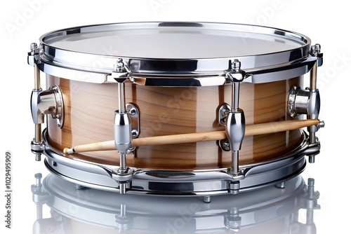 Reflected marching drum and snare isolated on white background