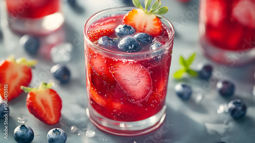 Refreshing Berry Juice with Blueberries and Strawberries