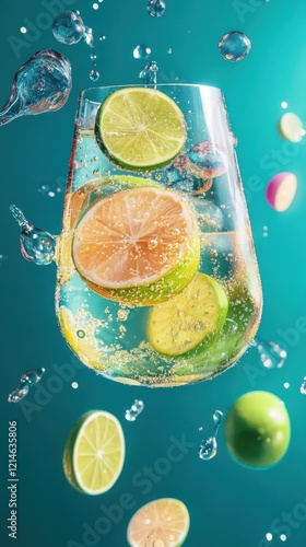 Refreshing Citrus Drink with Sparkling Water and Ice