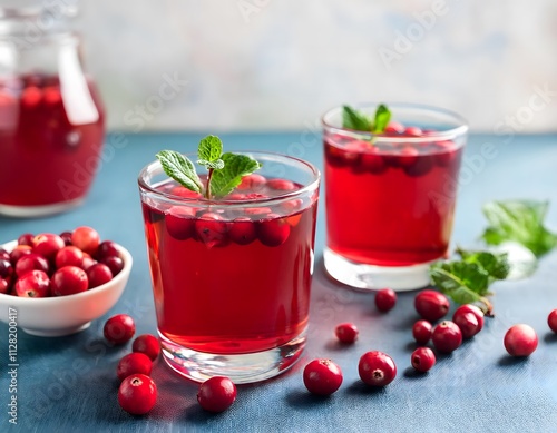 Refreshing cranberry punch served in glassware with fresh berries and sprigs of mint