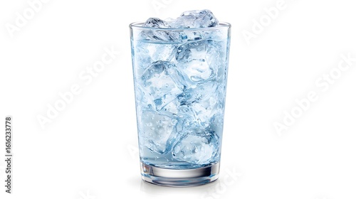 Refreshing glass of ice cubes, a perfect cool drink in the hot day. The ice cubes gleam within the glass, offering a delightful visual display