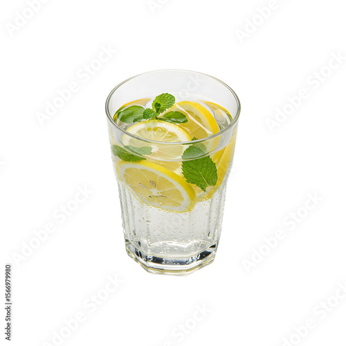 Refreshing glass of lemonade with lime and mint