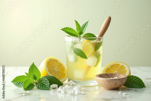 Refreshing Homemade Lemonade with Fresh Mint and Ice