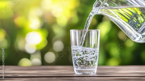 Refreshing Hydration: A Glass of Water Poured in a Natural Setting
