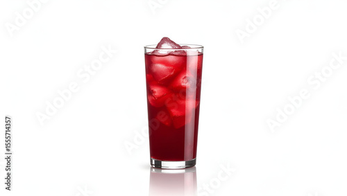 Refreshing Iced Orange Juice Drink with Lemon Garnish in Tall Glass, Studio Shot, White Background, Summer Beverage Concept, Clean and Vibrant.