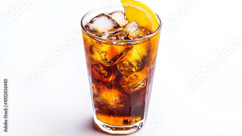 Refreshing iced tea with lemon wedge served in a tall glass on a bright background