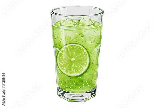 Refreshing Lime Soda Drink in Glass - Watercolor Illustration clipart watercolor png, isolated on transparent background