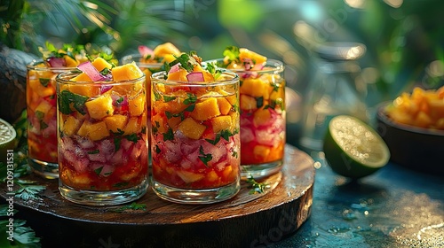 Refreshing Mango Salsa Served In Small Glasses
