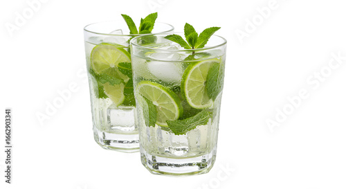 Refreshing mojito cocktail drink recipe with lime and mint in glass on black background summer drinks isolated on transparent white background