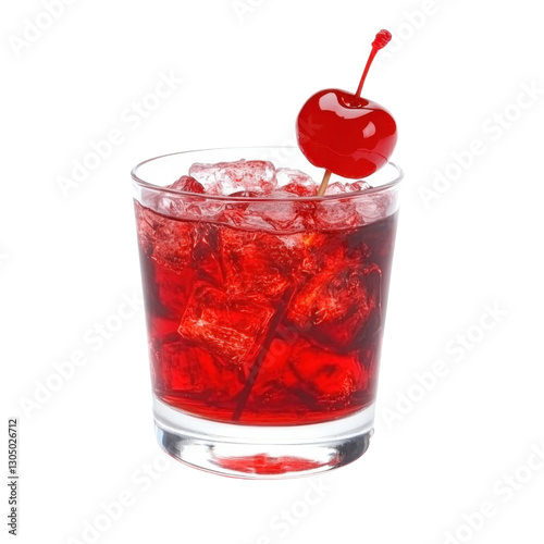 Refreshing Red Cocktail with Ice and Cherry on Top in Glass