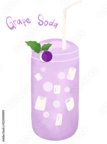 Refreshing smoothie with float topping, grape squash, and straw. Great for ads, menus, packaging, or summer drink illustrations. Perfect for food and beverage design use