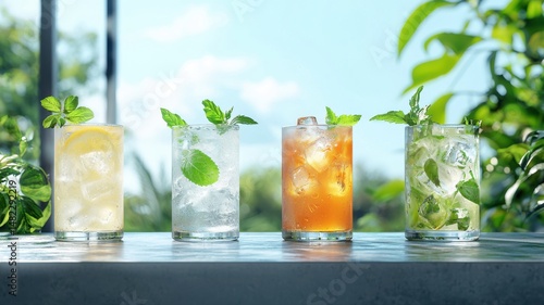 Refreshing Summer Drinks with Ice and Mint Outdoors mint outdoors summer cocktails iced beverages ai