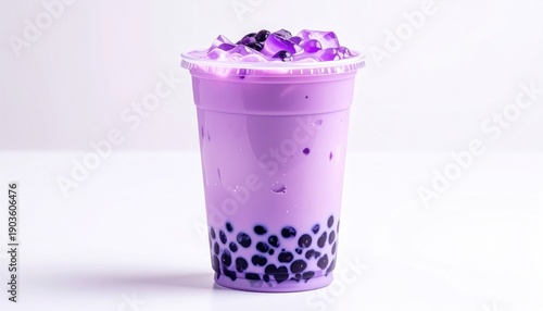 Refreshing Taro Bubble Tea with Tapioca Pearls and Toppings.