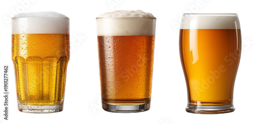 Refreshing Variety of Craft Beer Glasses with Different Foamy Heads