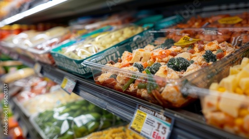 Refrigerator in the supermarket with frozen vegetables